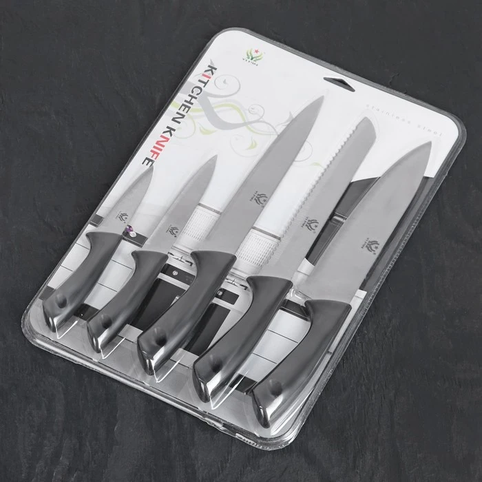 Набор кухонных ножей «Энеолит», 5 шт, лезвие 8,5/12,5/19,5/20/20 см, цвет чёрный