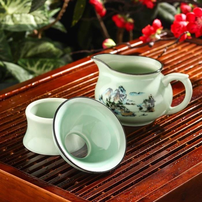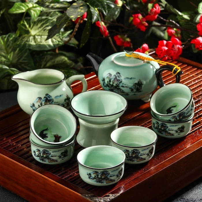 Набор для чайной церемонии "Шуйсянь", 9 предметов: чайник 250, 6 пиал 50 мл, чахай 200 мл, сито, подставка