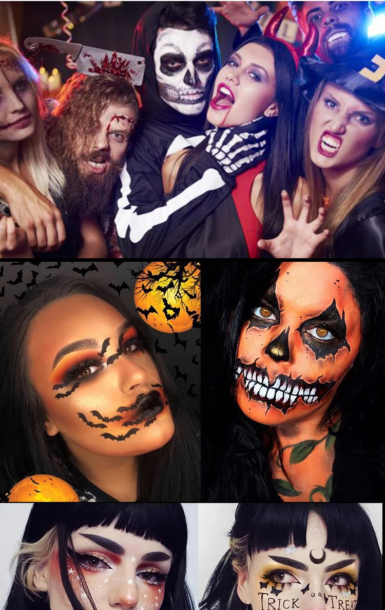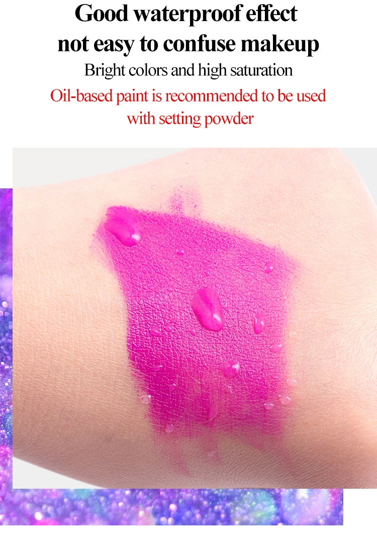Мягкие ингредиенты, безопасные в использовании | Ингредиенты такие же, как и Губная помада для девочек | Мягкие и не раздражающие | Хороший водостойкий эффект, непросто спутать макияж | Яркие цвета и высокая насыщенность | Краску на масляной основе рекомендуется использовать с пудрой для нанесения теней | Картина тела | Макияж для укладки | Макияж на Хэллоуин