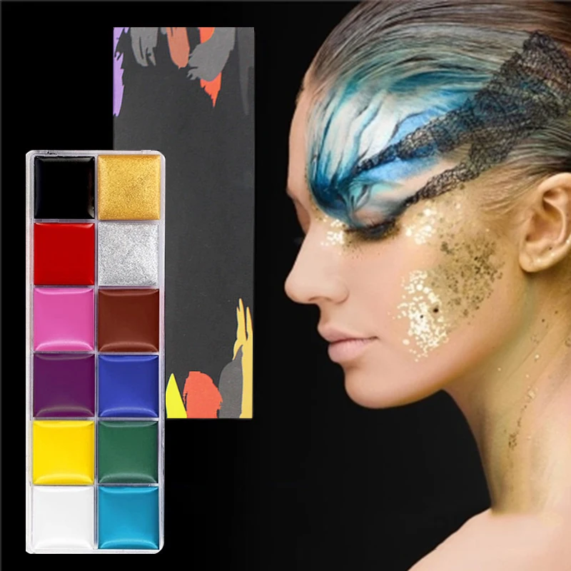 12 цветов краска для рисования лица/пигмент для боди-арта Макияж для детей вечерние эллоуин безопасные масляные краски с кистями драма макияж