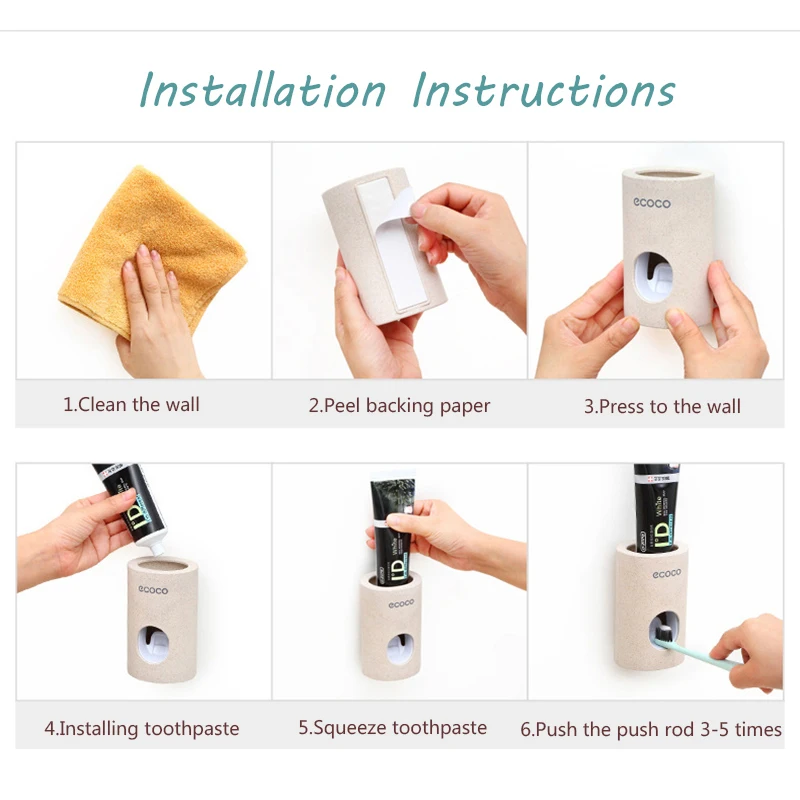 ☆ Очистить стены ☆ Корки оклеечная бумага ☆ Пресс к стене ☆ Установки зубная паста ☆ Для зубной пасты для зубной ☆ В первый раз, нажмите на толкатель 3-5 раз Примечание: вход зубной пасты должен быть установлен на месте, в противном случае экструзия зубной пасты будет недостаточной или не сможет выдавить зубную пасту!