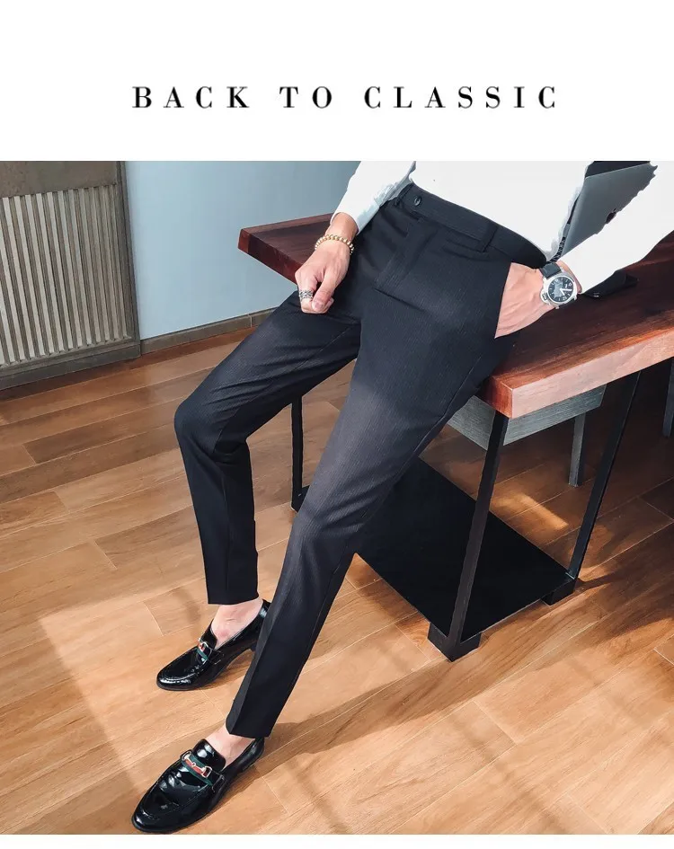 Отзывы о Мужские классические брюки в британском стиле облегающие черные и серые мужские