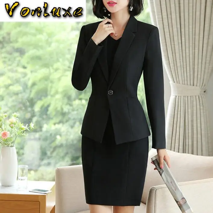 Костюмы для офиса, женская одежда, деловой костюм из 2 предметов, комплект размера плюс, осенне-зимний черный блейзер с длинным рукавом, женская униформа