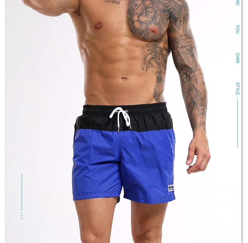 F18 сексуальные лоскутные дышащие пляжные шорты, плавки, быстросохнущие мужские купальные костюмы, новые спортивные свободные шорты для тренажерного зала, мужские бикини, одежда для плавания