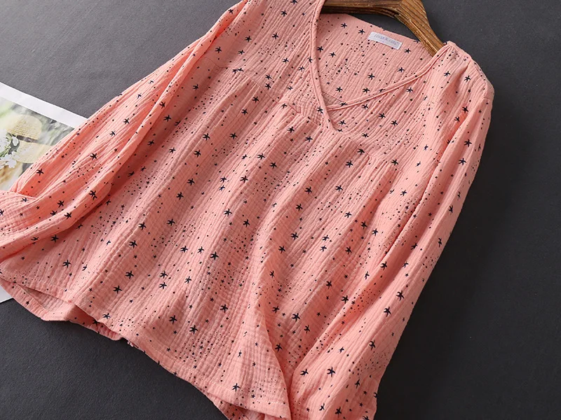 Отзывы о Женский пижамный комплект в японском стиле на весну и осень из 100% хлопка брюки с