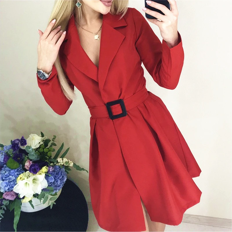 Отзывы о Простое Повседневное однотонное осеннее женское платье с воротником Офисная
