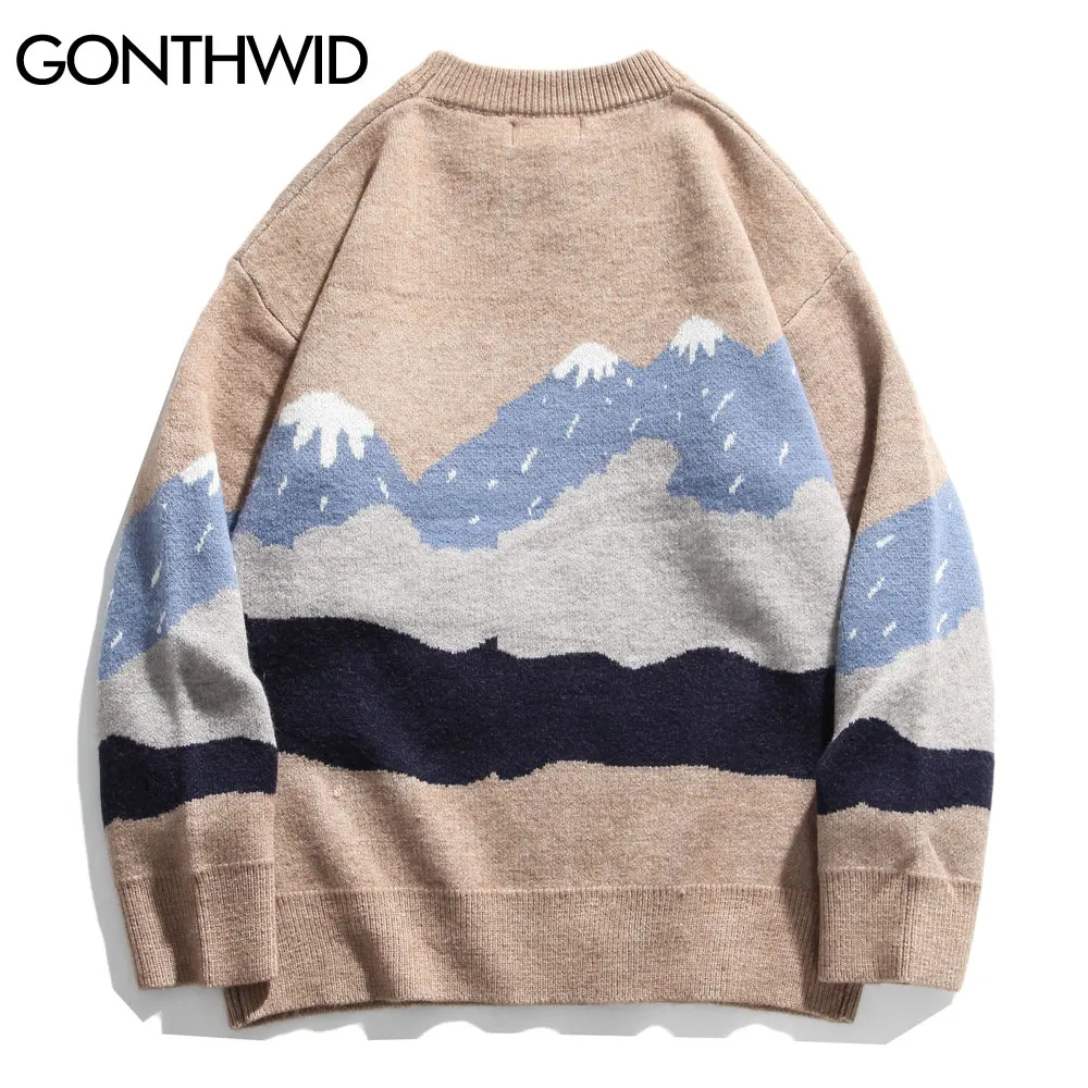 Отзывы о Вязаный джемпер GONTHWID в стиле Снежной Горы и медведя мужской свитер пэчворк