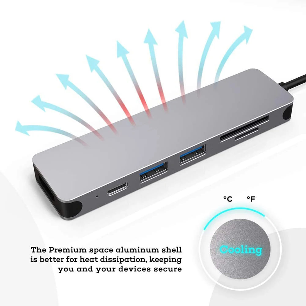 6 в 1 USB 4K HDMI мультипортовый кардридер концентратор для ноутбуков MacBook Type C устройств