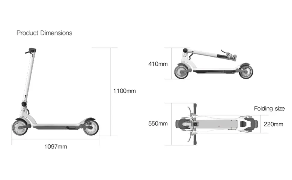Черный и серый цвет высококачественный корпус из алюминиевого сплава; Вес скутера 56lbs Максимальный вес нагрузки 220lbs; Размер продукта 43 дюйма * 43 дюйма; Размер складывания 16 дюймов * 61,6 дюйма