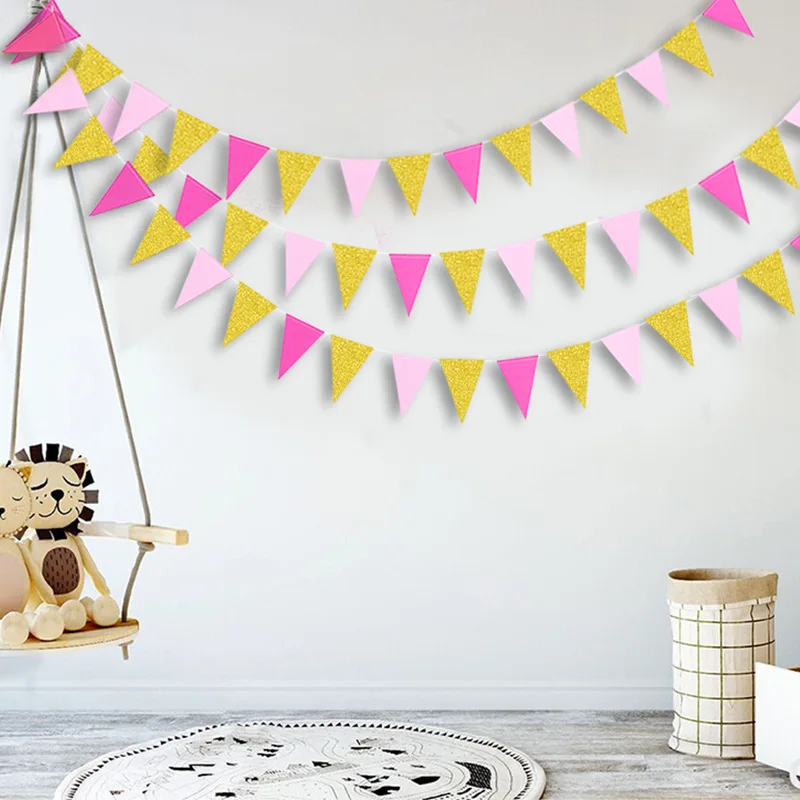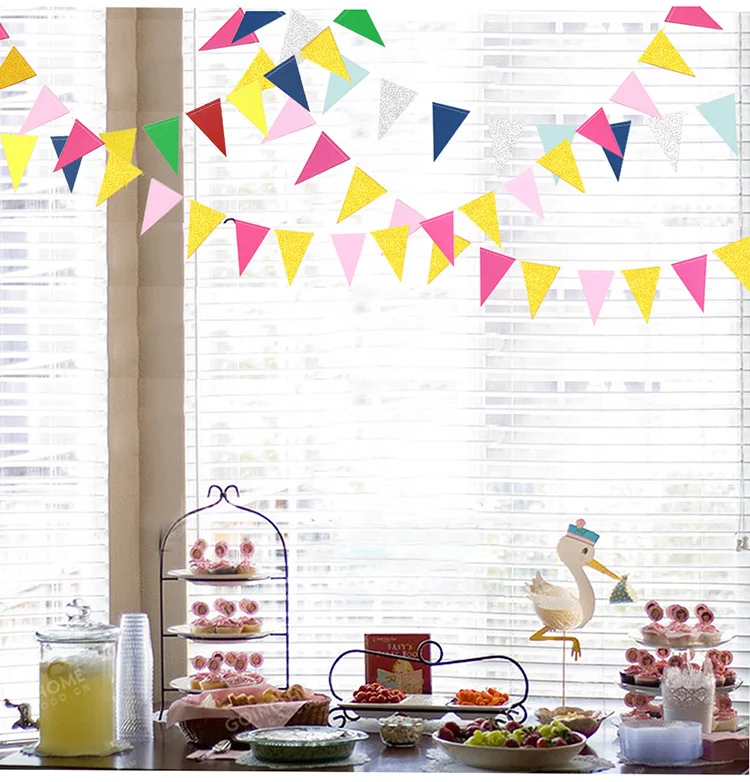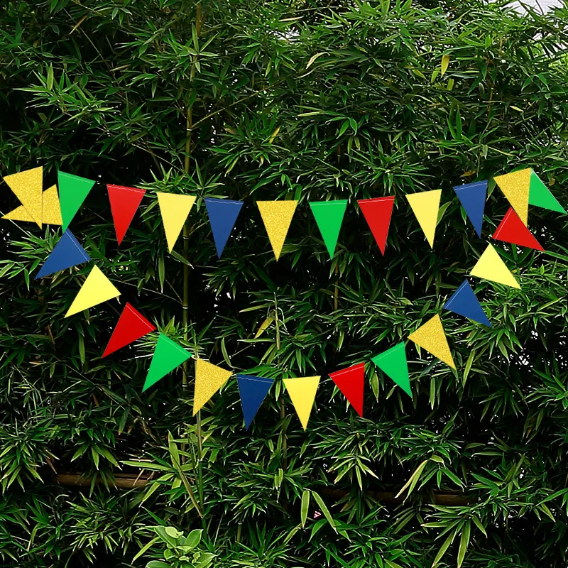 Название: треугольный цветной флаг Материал: цветной + Блестящий картон Размер: длина около 3 м, в целом 26 шт. Что касается хроматической аберрации, то при съемке под светильник или солнечный светильник будет иметь отклонение от s. Реальный цвет в основном в натуральной форме