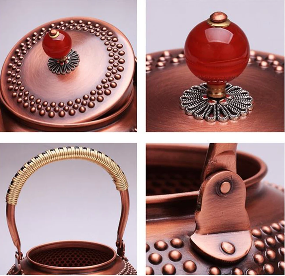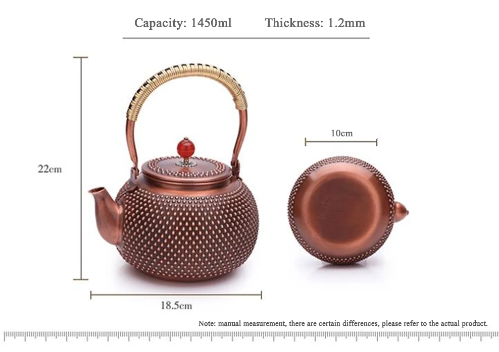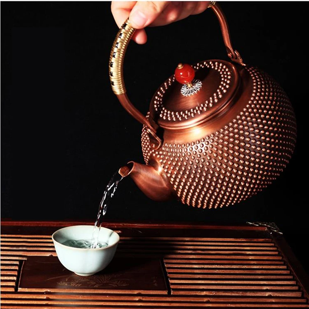 1400 мл чайник из чистой меди в японском стиле, ручная работа, молочные ногти, Красный медный горшок, внутренняя стена, без покрытия, варочный чайник для воды, чайный набор для здоровья