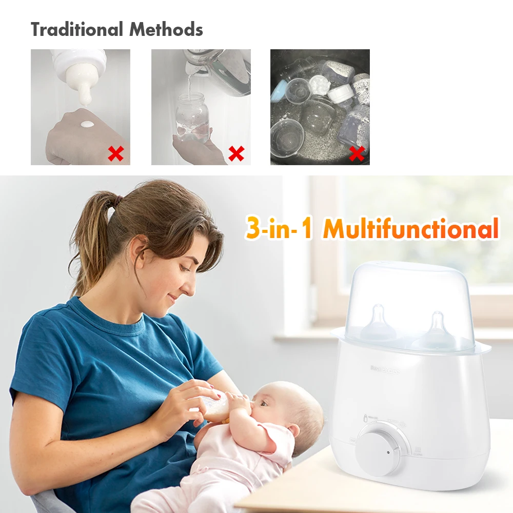 3 в 1 Многофункциональный подогреватель бутылок: 104 ℉ теплое молоко, 158 ℉ тепла Еда, 212 ℉ паровой стерилизации, эта грелка может удовлетворить различные потребности для кормления малыша.