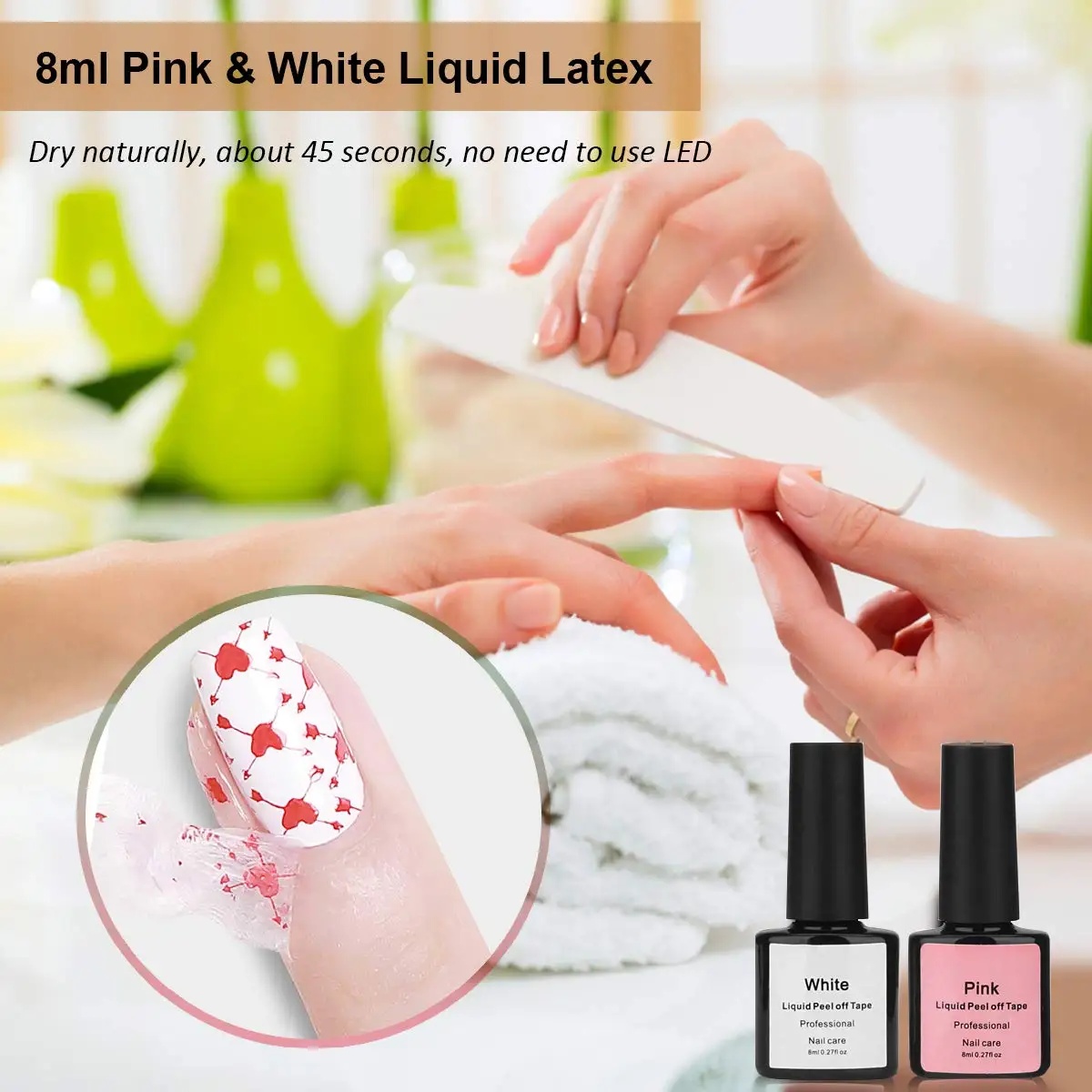 * Нанесите слой латекса на ногти. Сушить естественным путем, около 45 секунд, не нужно использовать светодиод❗