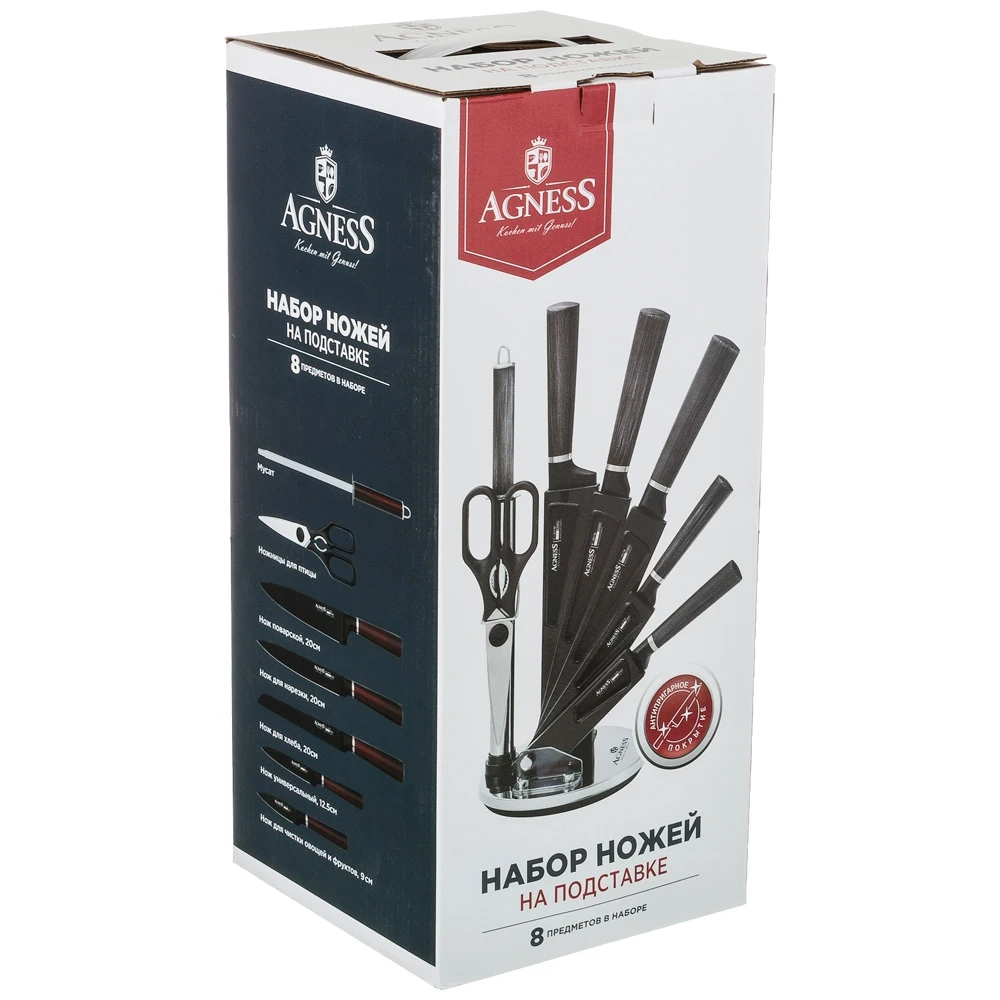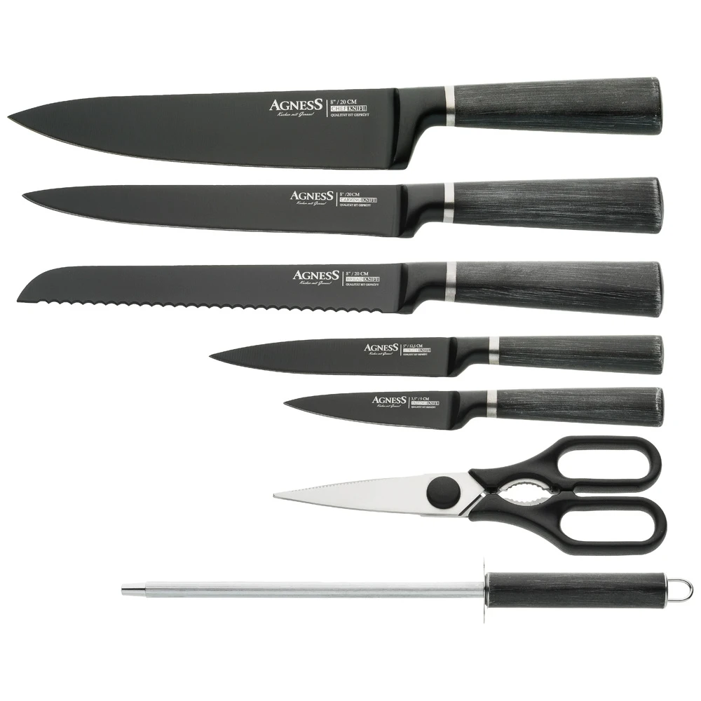 Отзывы о Agness Knife Set with Scissors and Musat on Plastic Stand 8 Pieces Kitchen supplies Sets Knives Accessories Dining Bar Home Garden utensils of |