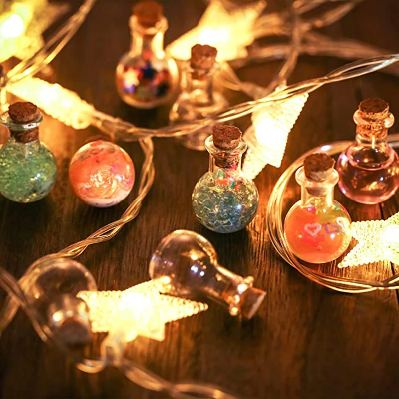 Прочный в использовании: Эти бутылки желаний изготовлены из стеклянного материала с деревянными стопперами, все из которых нетоксичные и без странного запаха, светильник весит и переносится для переноски или хранения, не легко сломать, хороший материал гарантирует вам долгосрочное использование