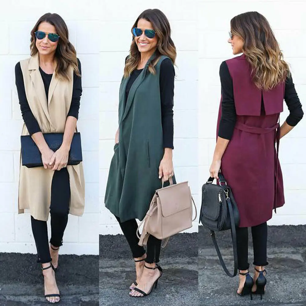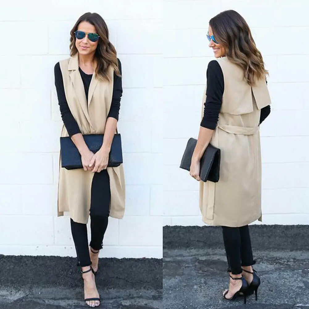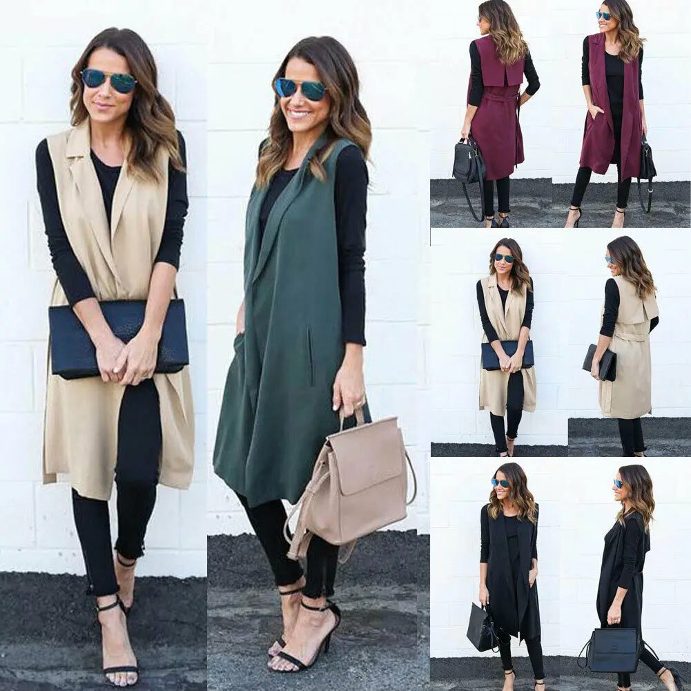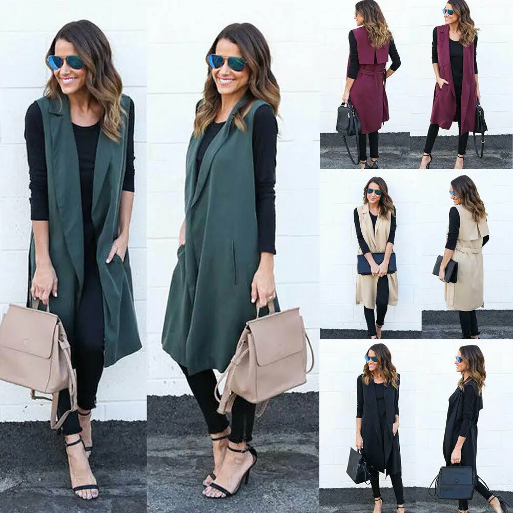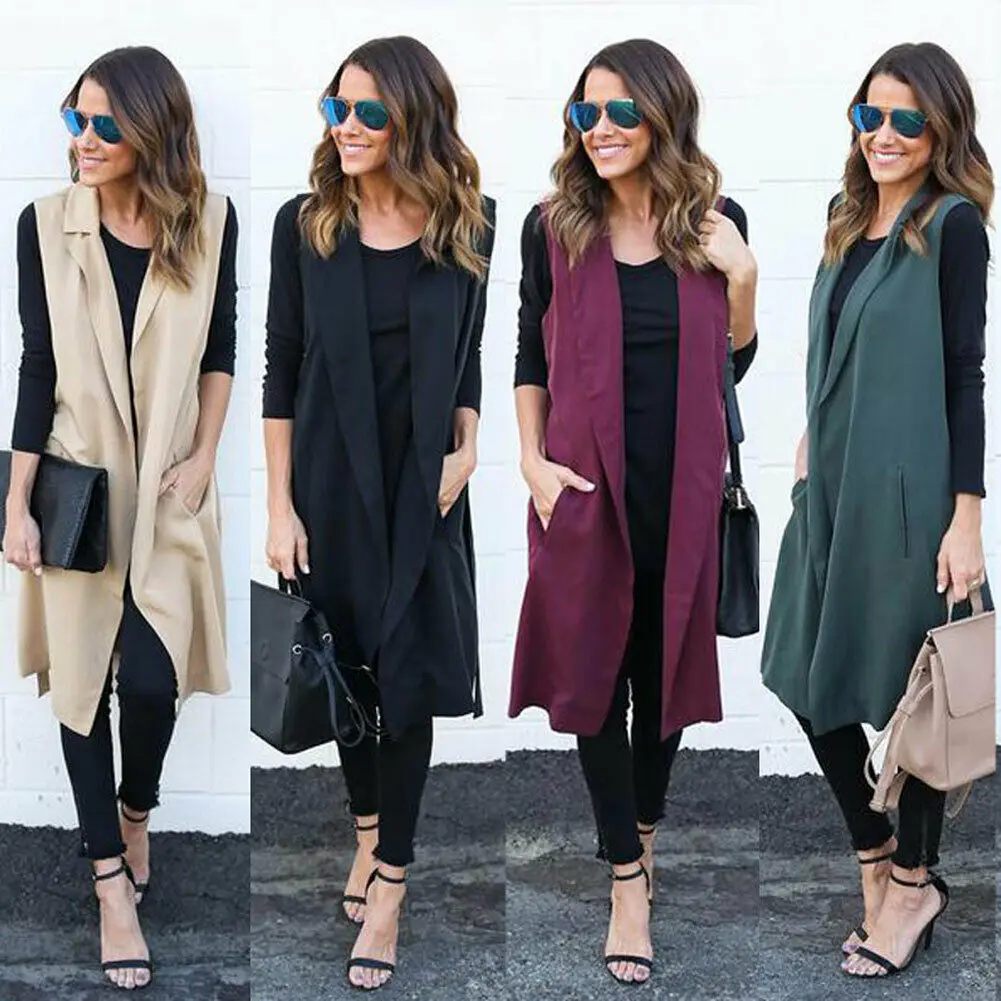 Осенне-зимнее женское модное элегантное пальто, жилет без рукавов, ветровка, кардиган, пальто, офисный Женский Длинный жилет с открытой передней частью