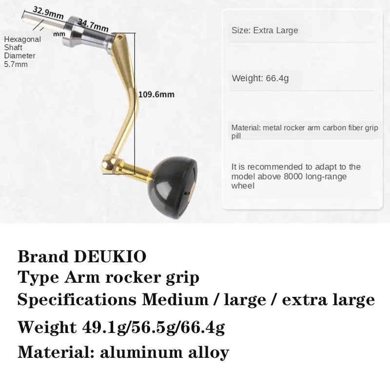 Рыболовная катушка DEUKIO, рукоятка с коромыслом, Золотое и Серебряное металлическое углеродное волокно, алюминиевая складная спиннинговая катушка, запчасти для модификации