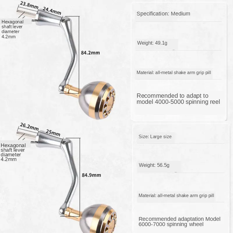 Ручка соединена с рыболовным колесом с шестигранным валом, который подходит для большинства вращающихся колес, изготовленных в Китае.