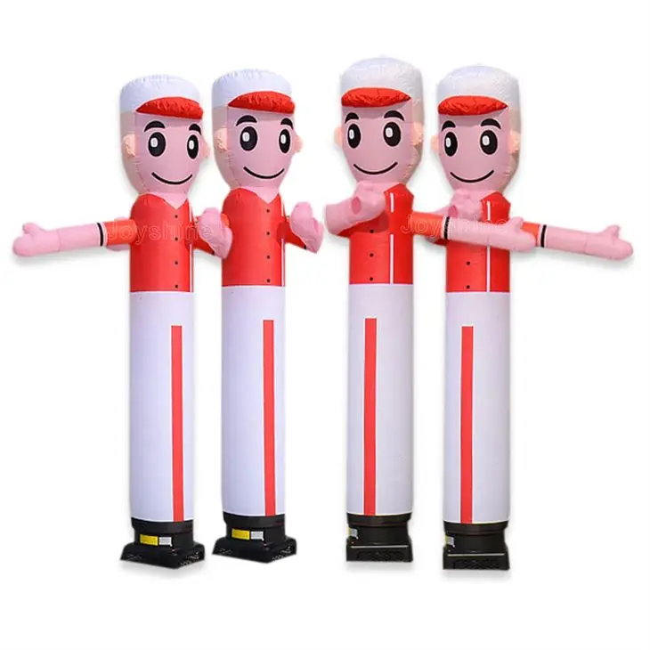 С большим размером, который air dancer отличается от 2 - 6 метров, изготовленных из парашютного материала. Обычно эта надувная реклама будет сделана с формой, которая напоминает человека с головой, двумя руками и двумя ногами, и мы можем сделать заказ в соответствии с заказом. В ножках будет установлен вентилятор или своего рода вентилятор в качестве сильного ветрогенератора в качестве надувного устройства. Теперь, когда нагнетатель включен, этот воздушный танец r будет танцевать в небе.