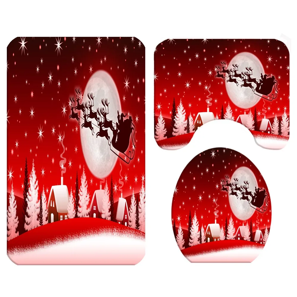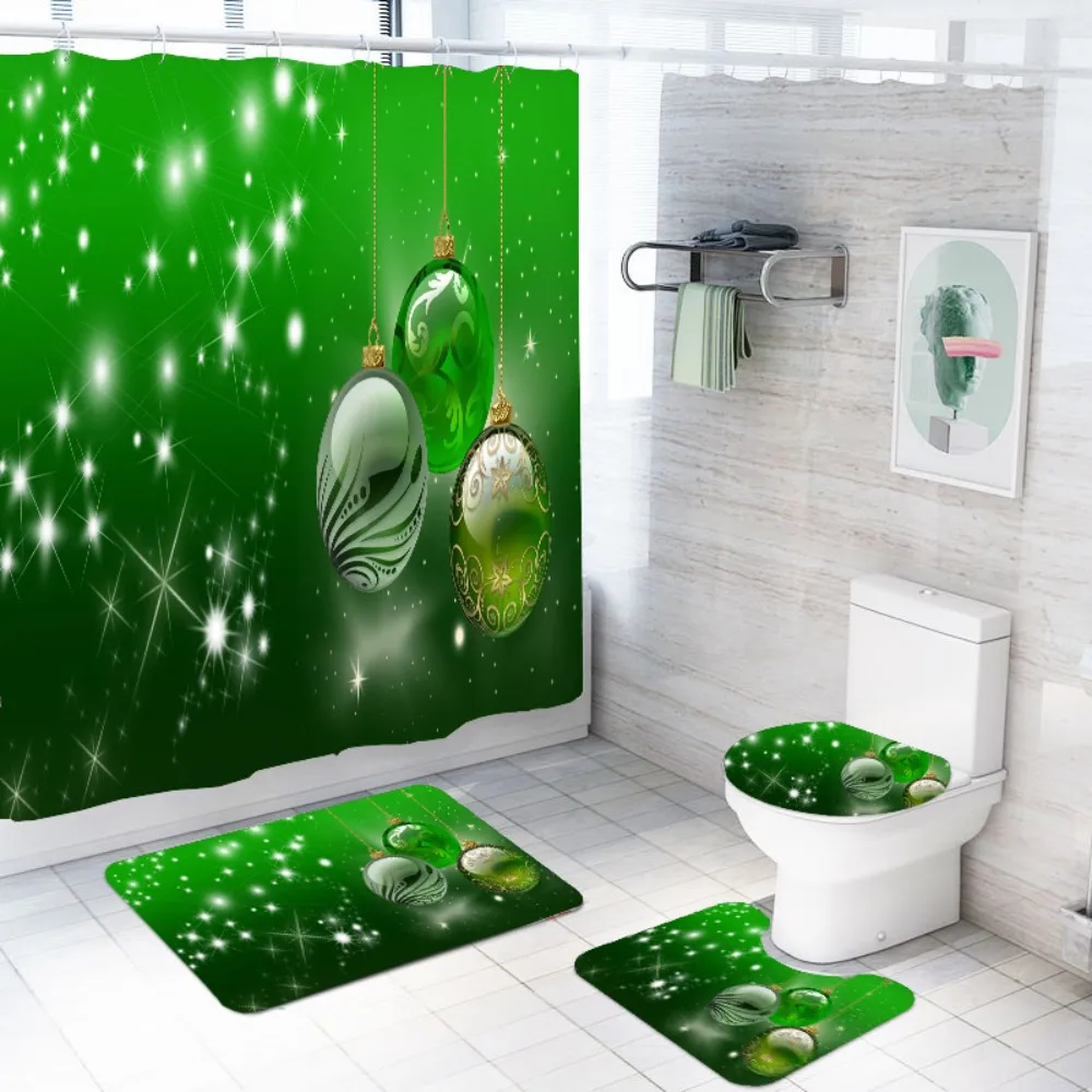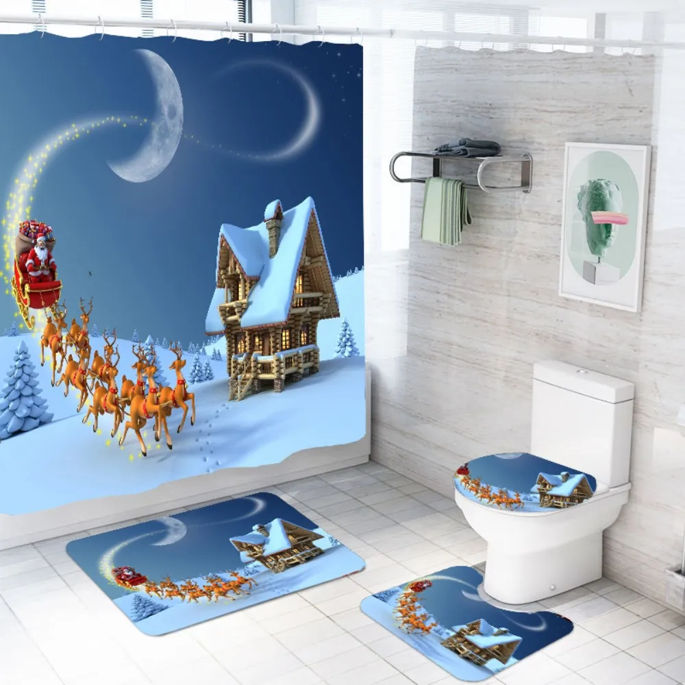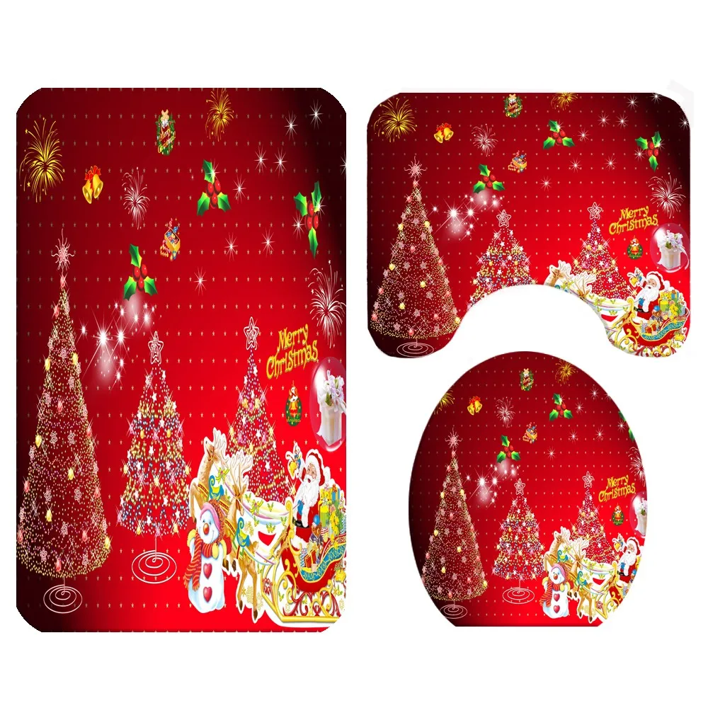 180x180 см занавеска для душа пьедестал коврик крышки унитаза крышка коврик нескользящий коврик для ванной комнаты Набор Ванная комната 3/4 шт Счастливого Рождества коврики для ванной комнаты Набор