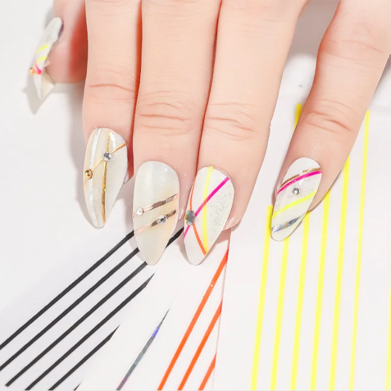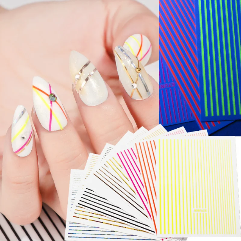 Отзывы о 1 шт. 3D наклейки для ногтей классические полоски черные золотые розовые