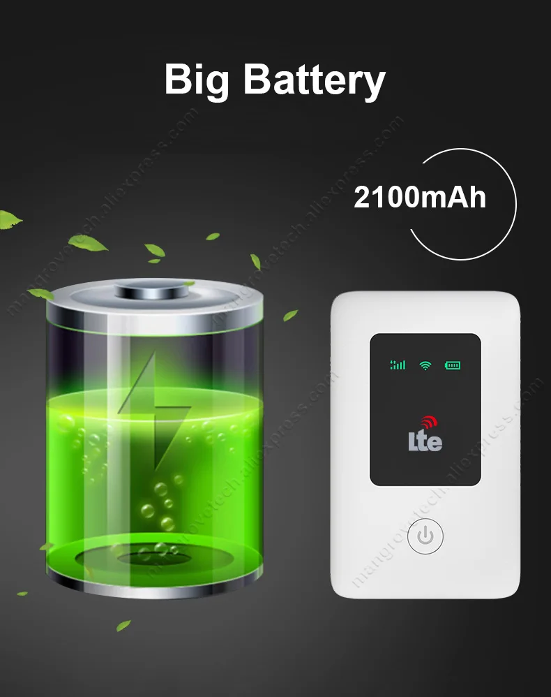 Этот MIFI представляет собой портативный 4G LTE sim-карта wifi роутер, он имеет 2100 мАч большой аккумулятор, поддержка 10 WiFi пользователей, использовать большую sim-карту.