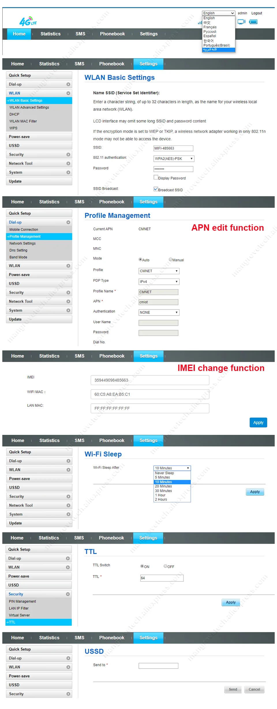 Наше программное обеспечение маршрутизатора является многофункциональным, обеспечивая расширенные функции многих других маршрутизаторов, таких как USSD,TTL,DHCP, виртуальный сервер, изменение IMEI, APN edit, 4G/Ethernet функции переключателя и несколько языков. Вы можете использовать наш маршрутизатор для нескольких целей удобно.