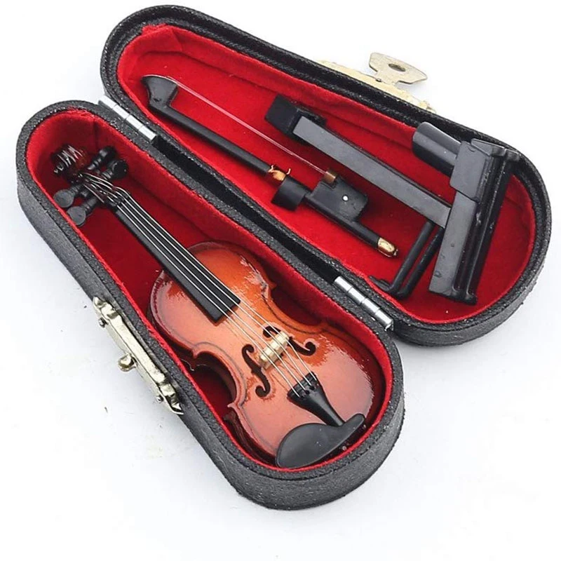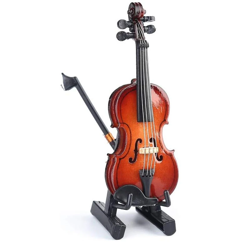 Отзывы о Деревянная миниатюрная скрипка с подставкой бантом и чехол мини-музыкальный