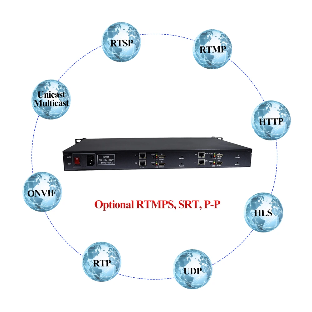 8. Сетевой протокол: совместим с ONVIF, SRT, HTTP, RTSP, RTMP, UDP Unicast/ multicast, HLS