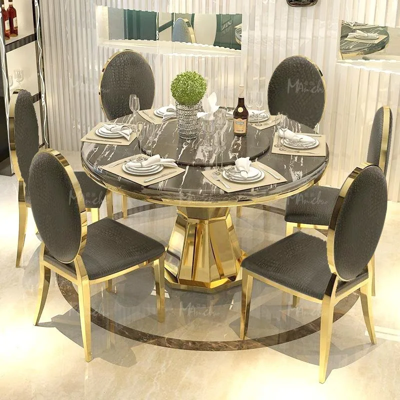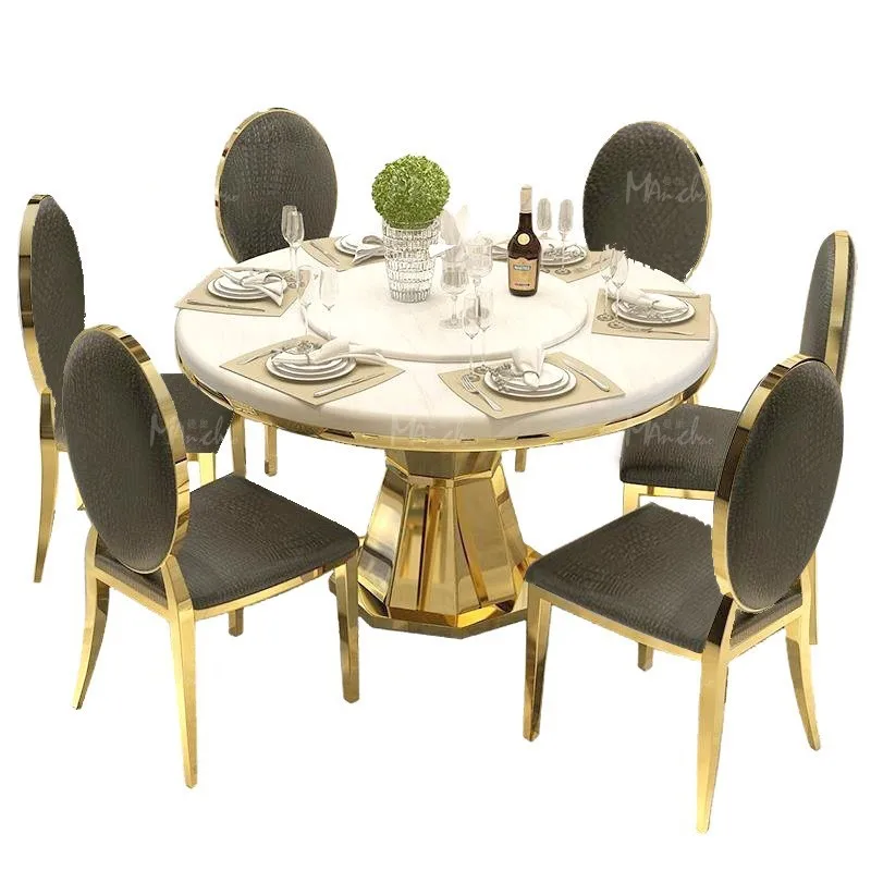 Отзывы о Позолоченный мраморный обеденный стол из нержавеющей стали креативный и стулья