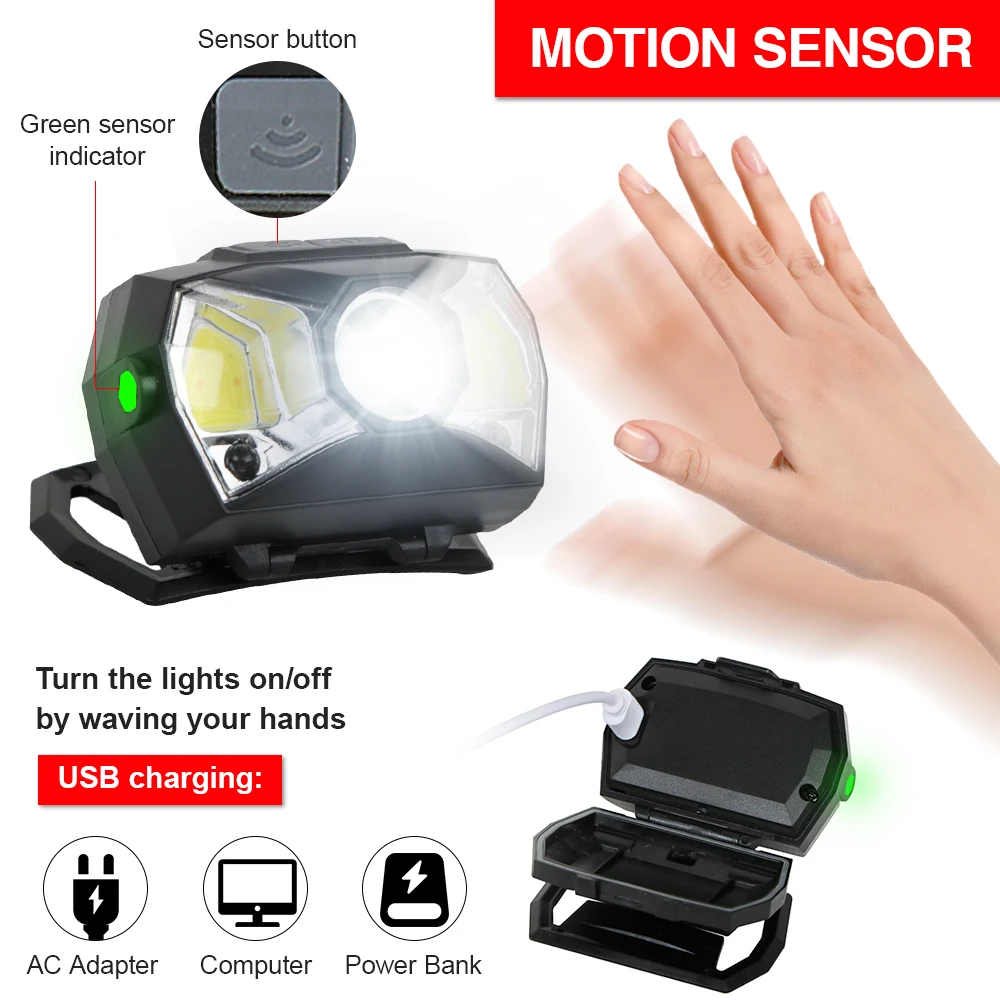 С нашим сильным светильник перезаряжаемый индукционный налобный фонарь, у вас могут быть надежным, hands-free светильник украсит ваше окружающей среды, чтобы вы могли наслаждаться свободно работать.