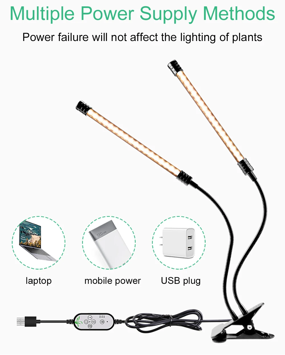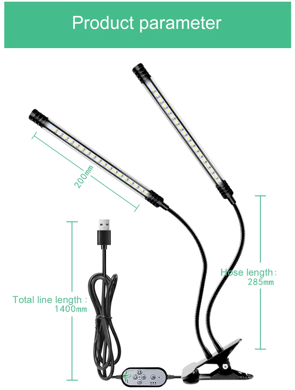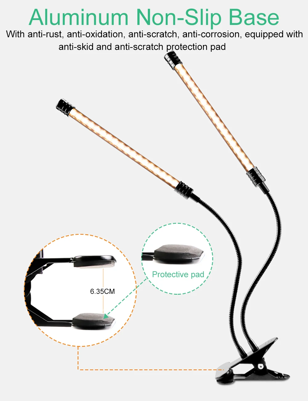 5 видов регулируемой яркости для адаптации к различным этапам роста растений, 3 режима переключения: светильник, светильник B и двойной светильник, 360 градусов гибкий гусиная шея, который может легко регулировать угол и расстояние, расширьте область освещения, чтобы обеспечить более эффективный светильник для большего количества растений.