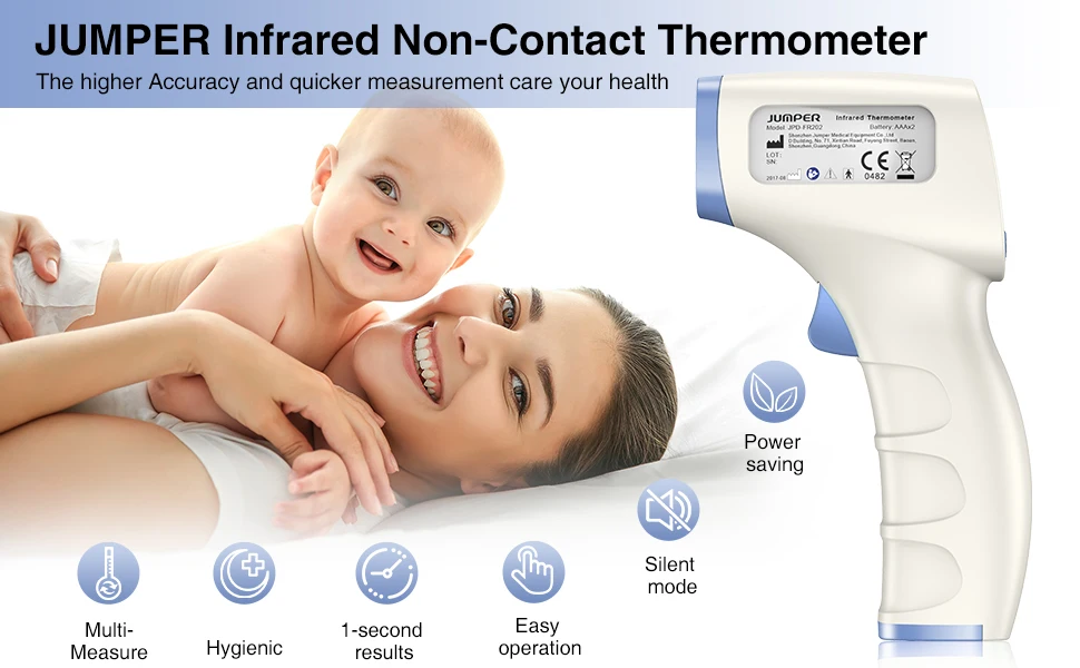 Инфракрасный термометр JUMPER FR202 измеряет температуру человеческого тела или объекта на основе инфракрасной энергии, излучаемой лбом или предметом (например, молоком и водой). Вы можете быстро получить результаты измерений после указания температурного зонда на цель. Диапазон измерения термометра в режиме лба составляет 32,0 °F-212,0 °F (0 °C- 100 °C). Продукт состоит из АБС-пластика, датчика температуры, инфракрасного измерительного элемента температуры, микрокомпьютерного управления, ЖК-дисплея, подсветки и зуммера. Термометр JUMPER поддерживает 20 предыдущих показаний, измерение без прикосновения, предупреждение о высокой температуре и т. д. Под термометром на лбу перемычки, люди не будут беспокоиться о физическом дискомфорте. Содержимое пакета: 1 х инфракрасный термометр JUMPER FR202 1 х Портативный чехол 1 x Руководство пользователя 2 батареи (AAA)