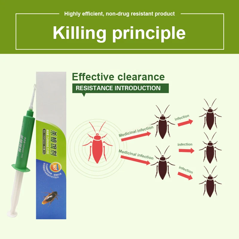 Обеспечить гель приманки после 3,5-7 дней на доза 30% первого доза, чтобы полностью убить тараканов.