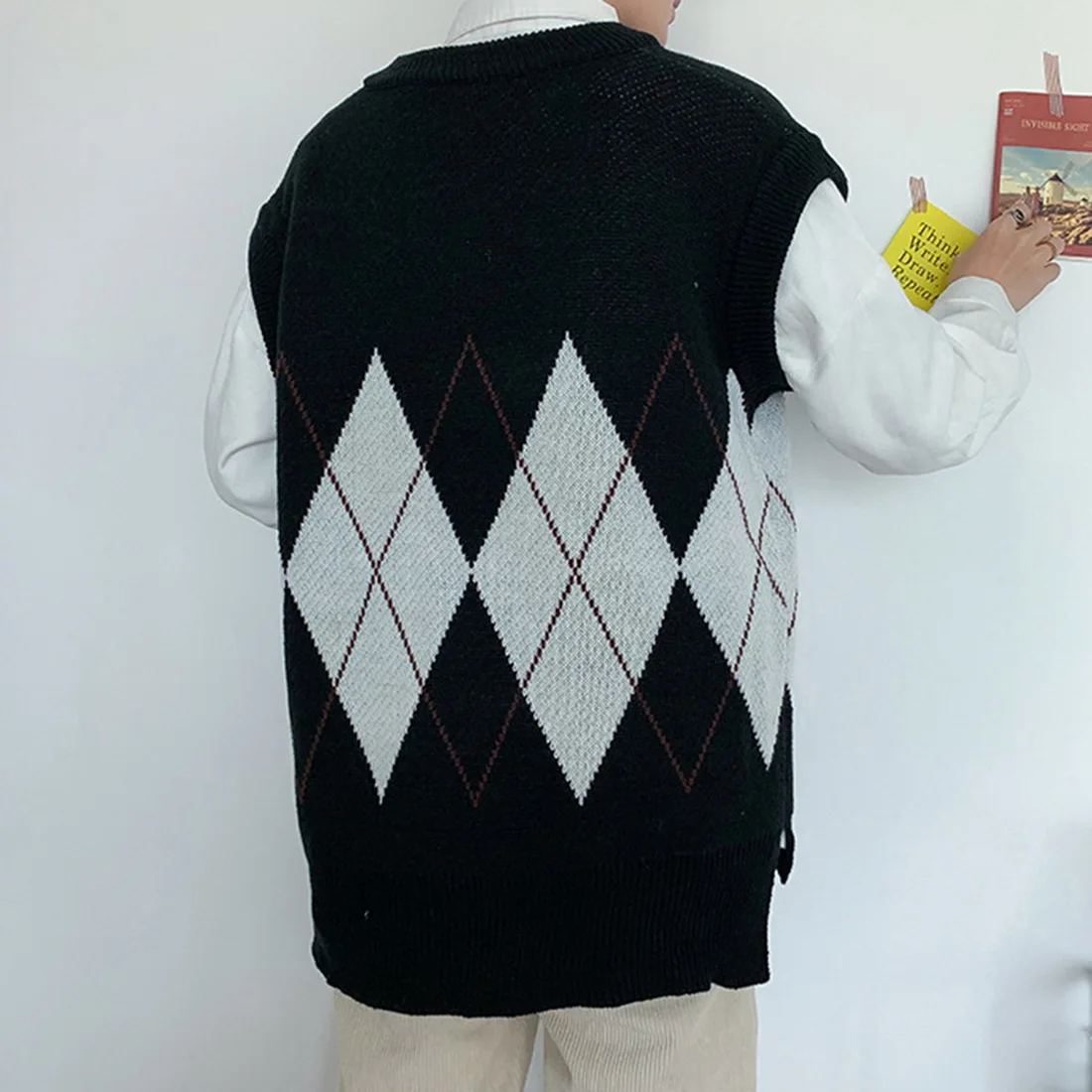 Отзывы о UEFEZO вязаная жилетка Для мужчин лоскутное платье без рукавов с v-образным вырезом