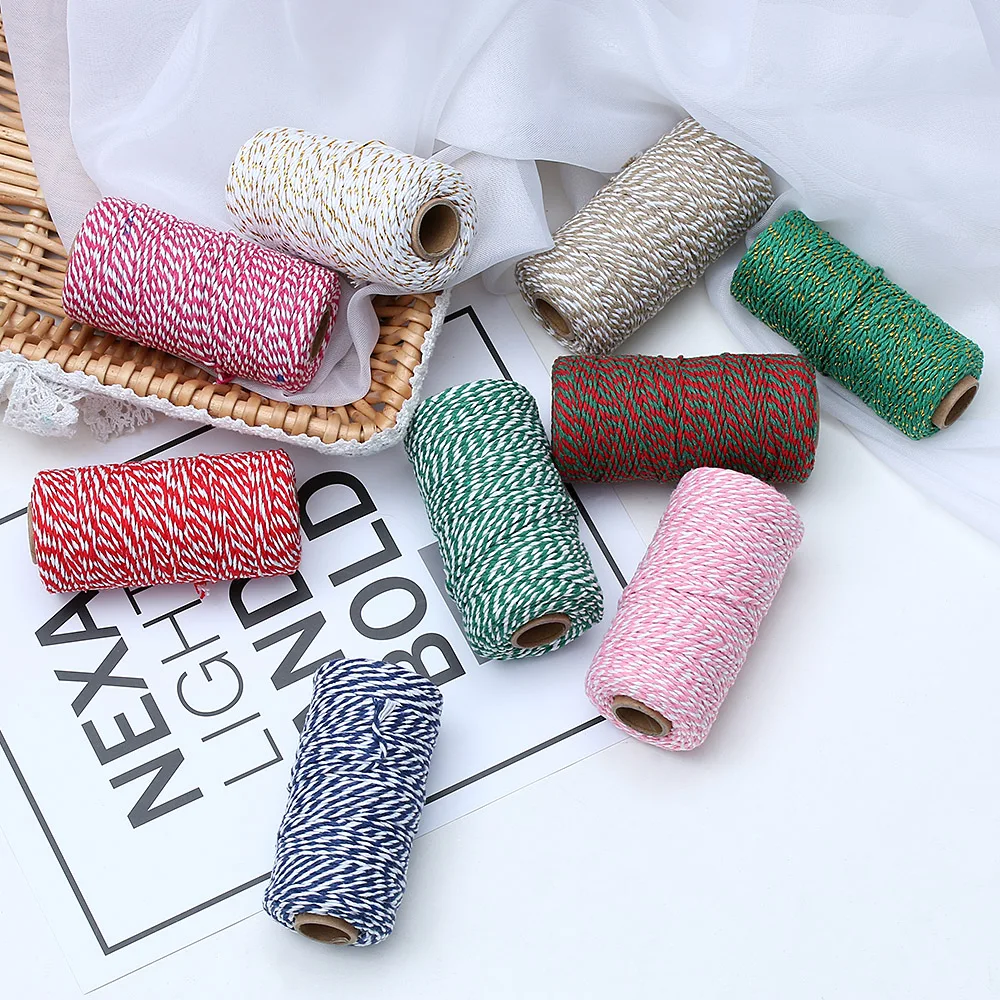 100 метров/рулон, 2 слоя, шпагат для выпечки, хлопковые шнуры, веревка для домашнего декора, Рождественский подарок ручной работы упаковки, ремесленных проектов, шнуры «сделай сам»