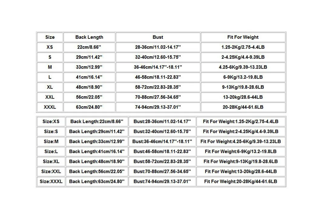 | XХХL | 63 см/24,80'' | 74-94 см/29,13-37,01'' | 20-28 кг/44-61.6LB |