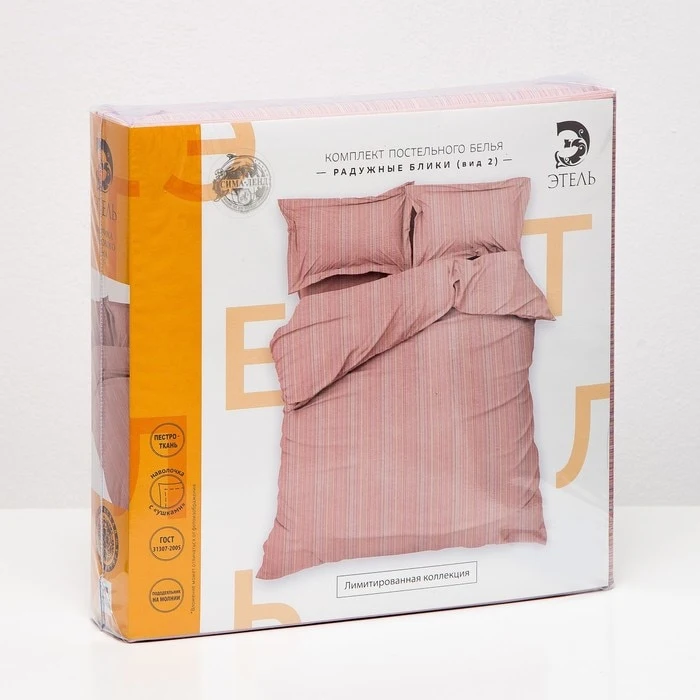 КПБ Этель "Радужные блики", евро / 2 сп / 1.5 сп, наволочки 50х70см, полиэстр, 85г/м2, розовый