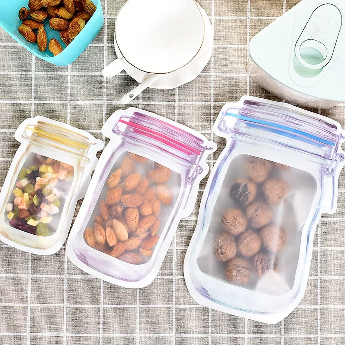 Отзывы о 4/12 шт многоразовые банки Форма Еда сумки гайки конфеты куки Водонепроницаемый