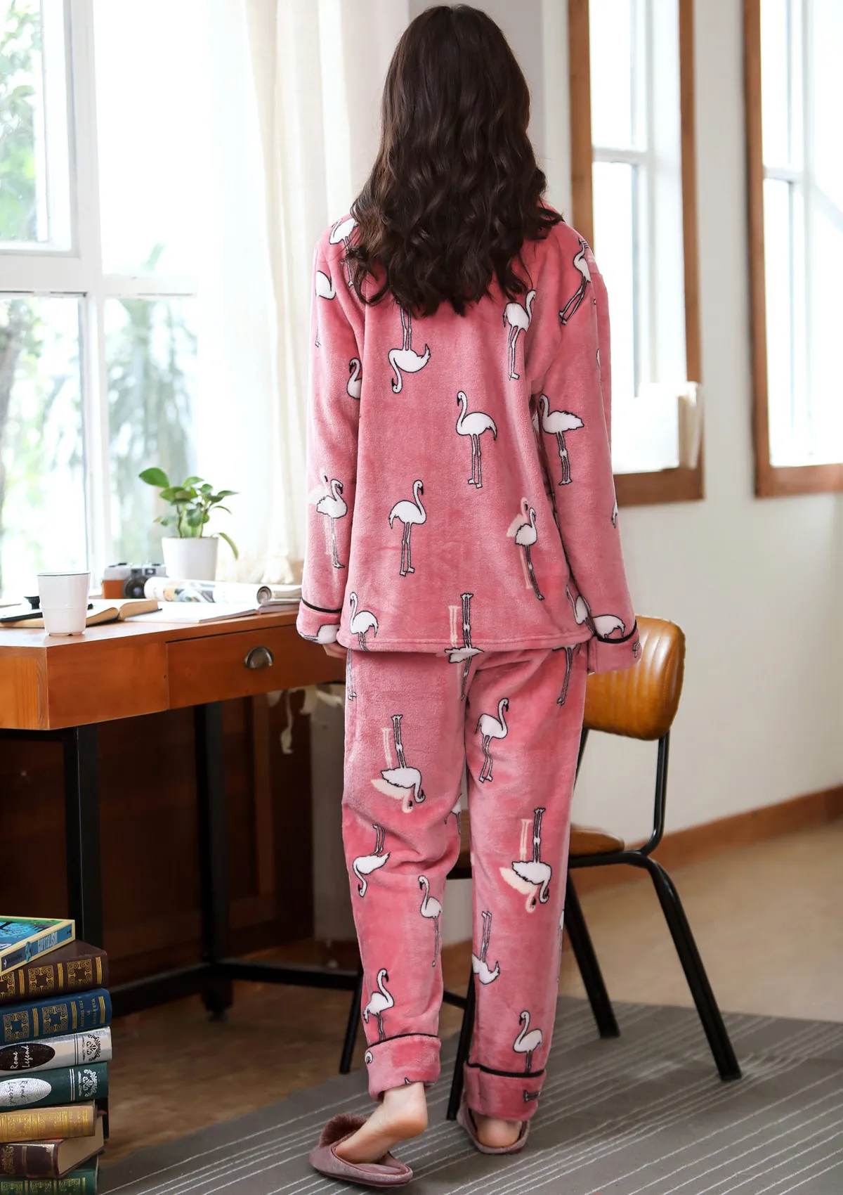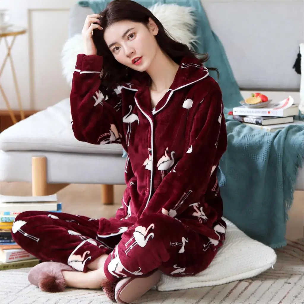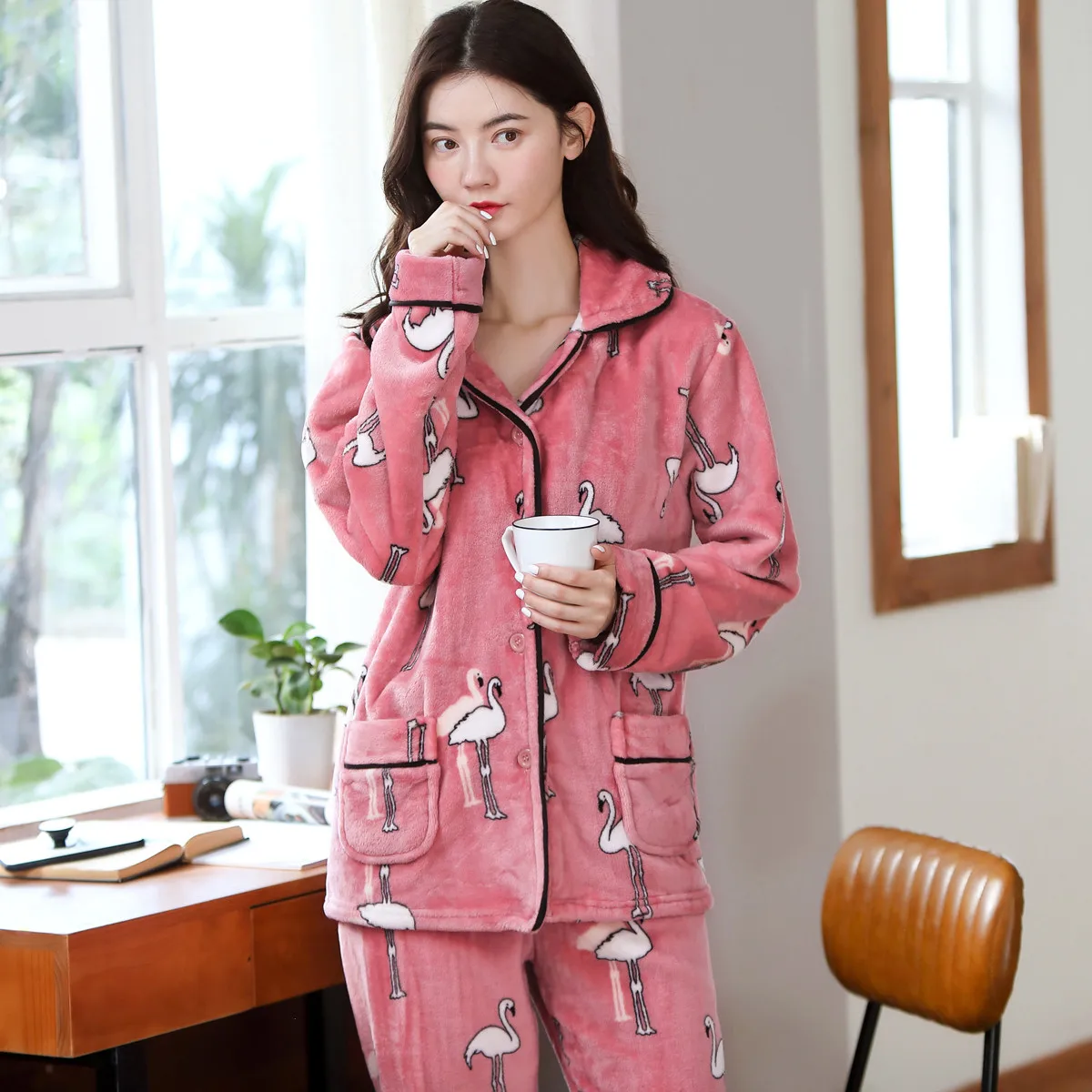 Отзывы о Утолщенная теплая Пижама комплекты для женщин пижамы с милым Рисунком Птиц