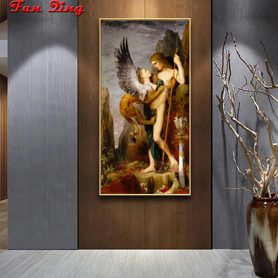 5d diy Алмазная картина Oedipus и Сфинкс Вышивка крестом квадратная круглая Алмазная вышивка ручной работы украшение дома подарки