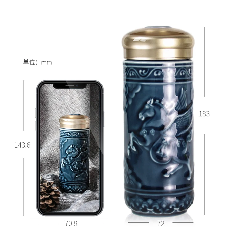 Бренд: qiantangxuan Серия: Success Название: Feihuang Tengda портативная чашка Размеры: 72x72x183cm Емкость: 350 мл двойной слой Ремесло: тиснение вручную Функция: активируйте качество воды Цветовая классификация: Yaozhou зеленый, сапфировый синий Упаковка: подарочная упаковка, сумочка, руководство, сертификат