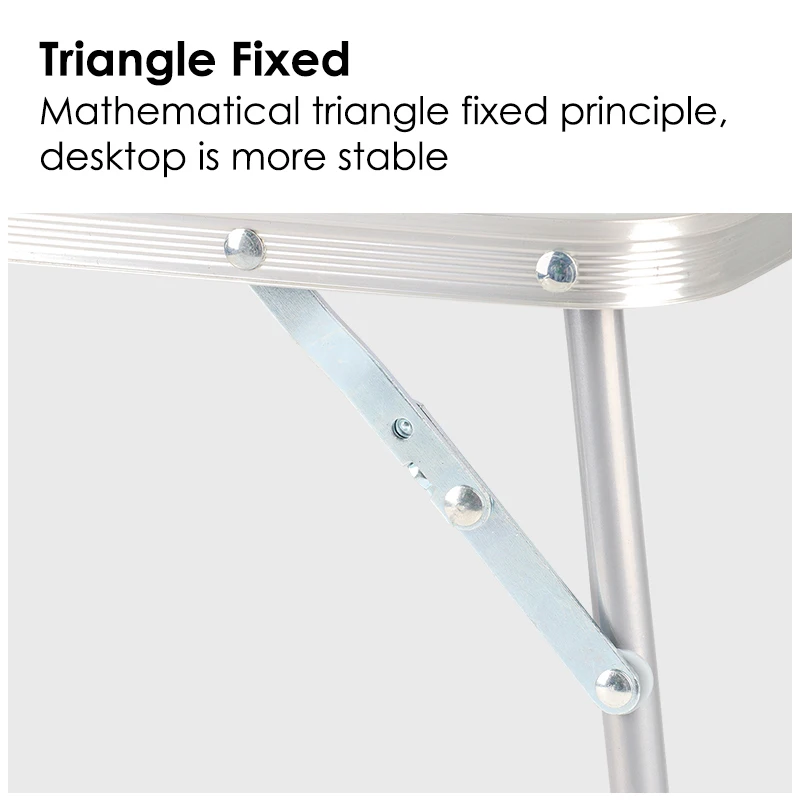 61*41*27 см регулируемая портативная настольная подставка для ноутбука для кровати, белая компьютерная настольная подставка для чтения Параметры: · Размер: 61*41*27 см/24*16*10,62 дюйма · Настольный Материал: Плотная доска (МДФ) · Материал границы: алюминиевый сплав · Материал кронштейна: железо · Цвет: серебристый, розовый, синий, бамбук · Вес: 1,4 кг/3,1 фунтов лёгкий нейлоновый трос · Посылка: складной компьютерный стол-1 шт. Уникальный функциональный дизайн: · Конструкция алюминиевой рамы: уменьшает вероятность повреждения рабочего стола · Треугольный фиксированный дизайн: математический треугольный фиксированный принцип, Рабочий стол более стабильный · Дизайн резиновой ручки: удобно носить с собой на открытом воздухе, луга, школа, офис · Дизайн хлопковой подкладки: губка EVA, нескользящая, износостойкая, более стабильная