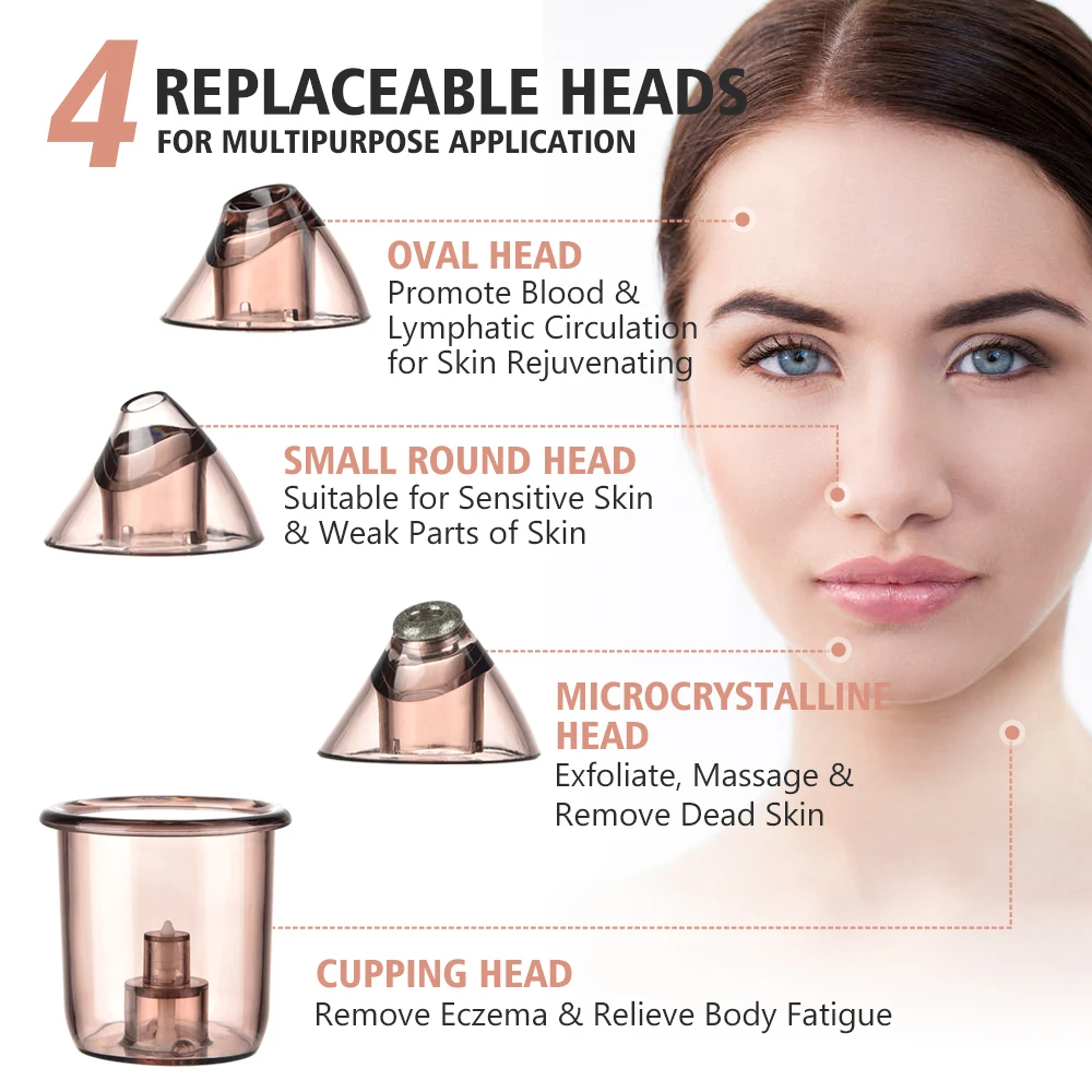 2.[Многоцелевое применение] 4 регулируемых уровня всасывания, 3 сменные всасывающие головки и 1 сменная баночная головка для свободной регулировки, широко подходит для различных типов кожи и работает на разных участках кожи, полностью соответствует вашим требованиям на очистка пор.