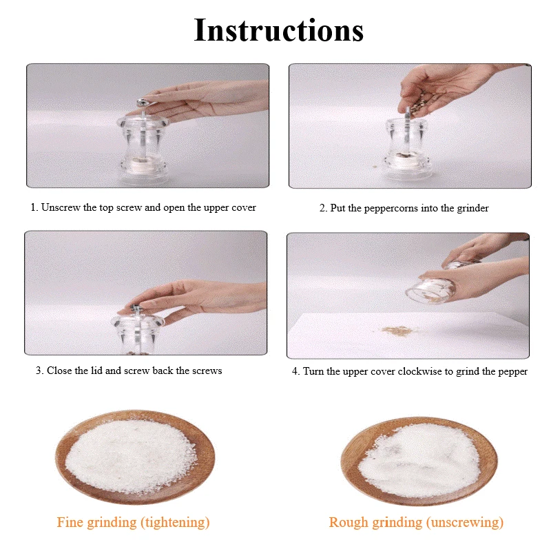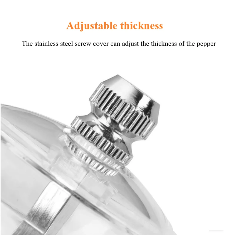 Регулируемая толщина: винтовая крышка из нержавеющей стали может регулировать толщину перца.