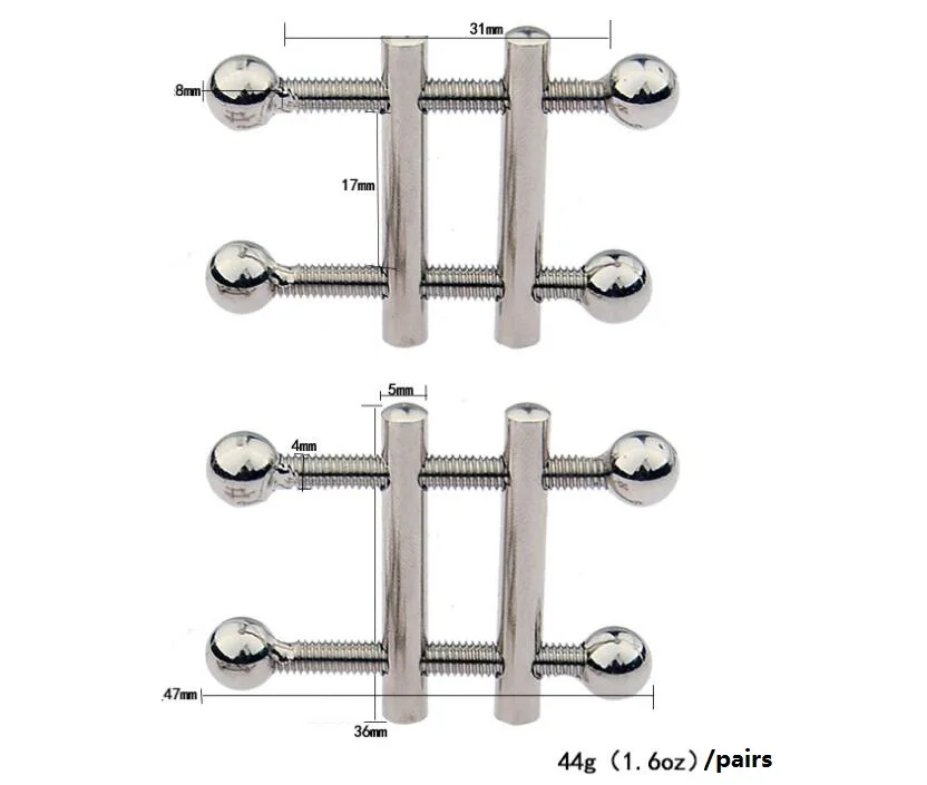 Спецификация:Пол: мужчин, wo мужчинМатериал: нержавеющая стальРазмер: см. Следующую картинкуВес: 44 г (1 пара)Цвет: серебристыйХарактеристики: миниФункция: зажим, соска и влагалище или Мошонка стимуляторПосылка: Секретная доставка, хорошая защита конфиденциальности