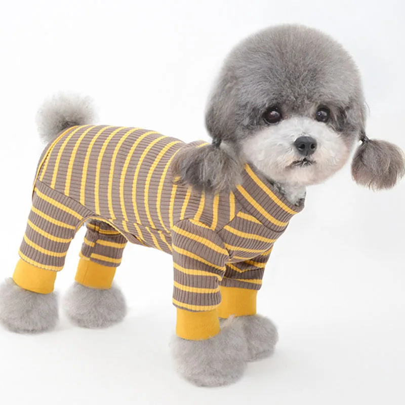 Полосками Одежда для собак кошек комбинезон с длинными рукавами и высоким воротником 4 ног рубашка толстовка Пижама для маленьких собак для собачек-Мопсов одежда для сна комбинезоны XL