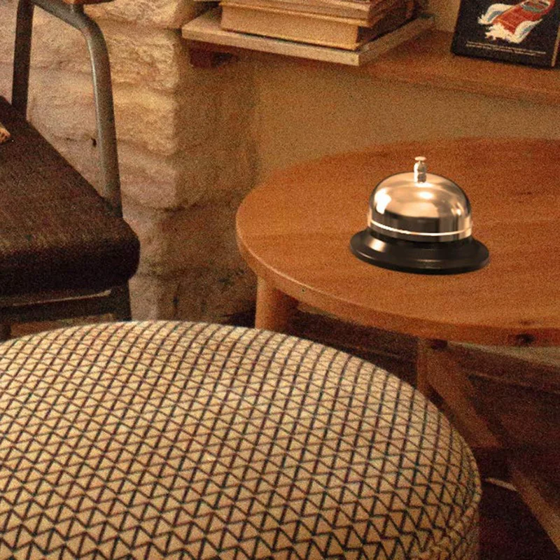 Прочный и дизайн]: прочная конструкция обеспечивает приятный и громкий рингтон с хромированным верхом e и матовым черным основанием [Описание]: поместите его на стабильную столешницу, нажмите на нее ладонью или пальцем, чтобы сделать звук, и звук будет четко привлекать внимание.
