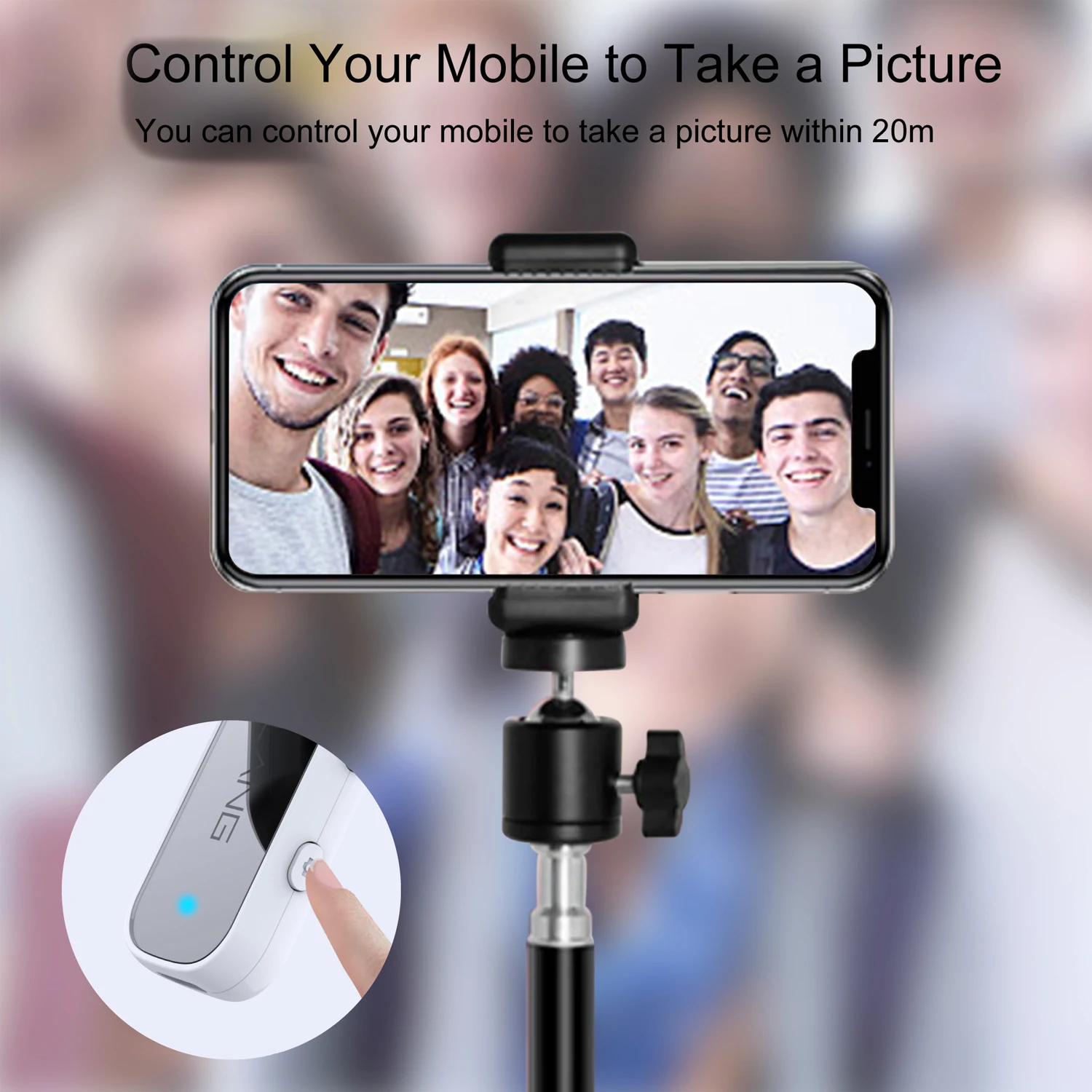 Работает как затвор камеры. Сопряжение с вашим телефоном через BT, и просто включите функцию фотографирования на вашем телефоне, нажмите кнопку фото съемки, чтобы сделать фотографии.