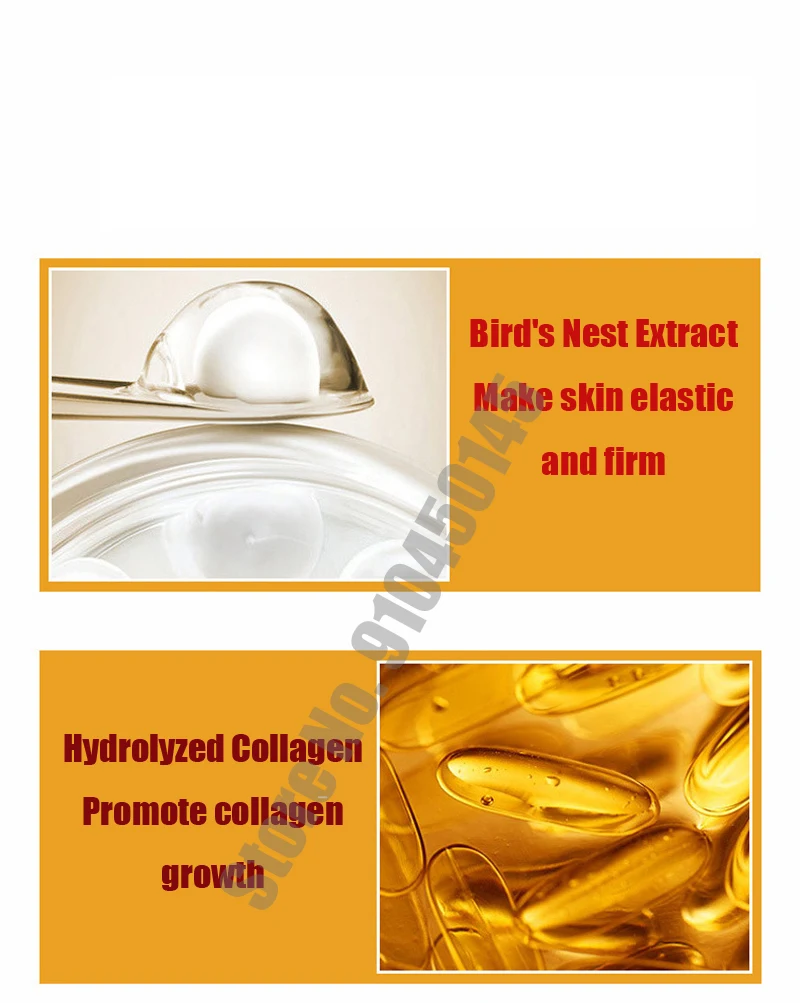Specially added gold components, silk extract, bird’s nest extract, fusion polypeptide components, small molecule active peptides are extracted through biological enzyme dissolution technology, the skin can be absorbed well, the absorption rate can reach more than 90%, and the silk is rich, Lightly nourish and lift up vertically and horizontally, consolidate young skin texture, enhance skin firmness, improve skin fine lines, and make skin firmer